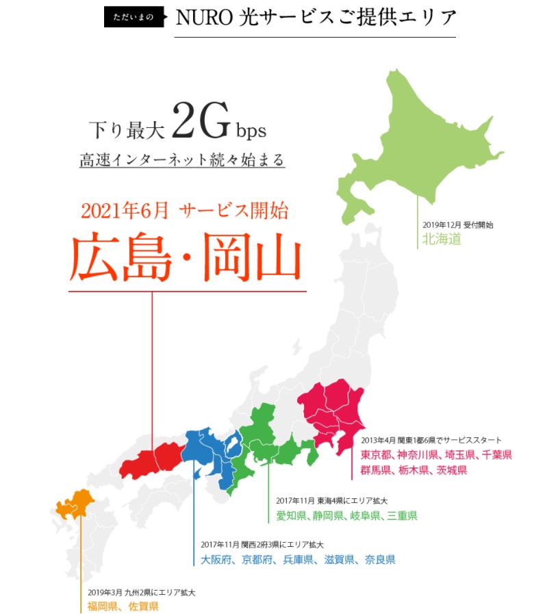 そのため、地域によってはNURO光の契約ができない場合があります
